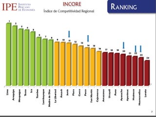 1) El documento propone una visión compartida para mejorar la competitividad regional en el centro del Perú. 2) Señala factores como educación, capital humano, infraestructura, instituciones sólidas y asociatividad empresarial como claves para el desarrollo. 3) Propone objetivos como reducir la pobreza, mejorar la infraestructura vial y energética, y consolidar corredores económicos para la región central para el 2023.