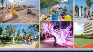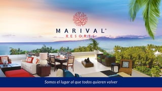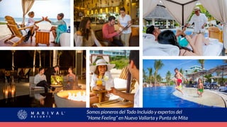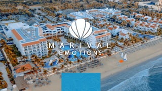 El documento proporciona información sobre tres resorts todo incluido en Riviera Nayarit, México: Marival Emotions Resort & Suites, Marival Distinct Luxury Residences y Marival Armony Luxury Resort & Suites. Los tres resorts ofrecen habitaciones y suites lujosas, múltiples restaurantes y bares, spas, albercas y actividades de entretenimiento. También se destacan las instalaciones y servicios de clase mundial como tratamientos de spa inspirados en diferentes culturas y opciones para eventos y convenciones.