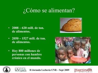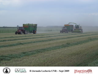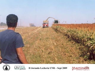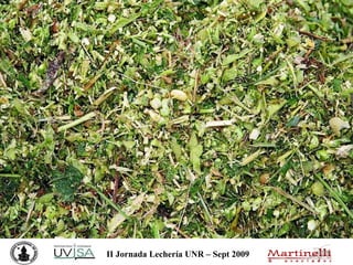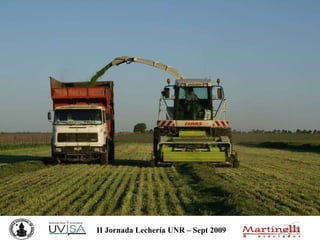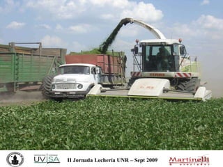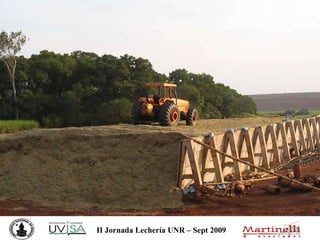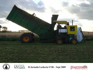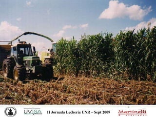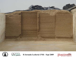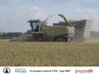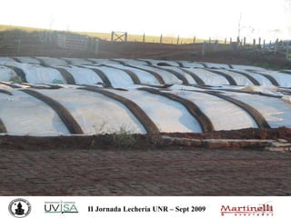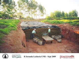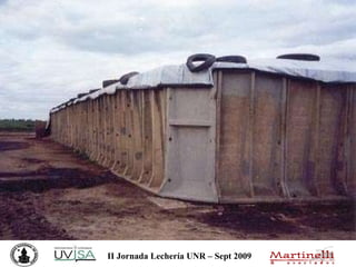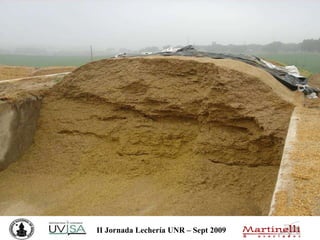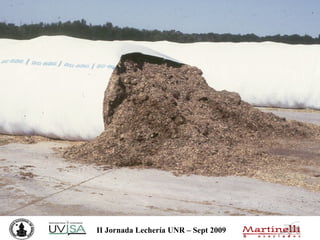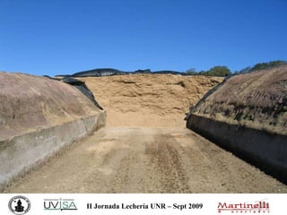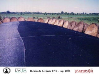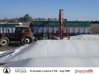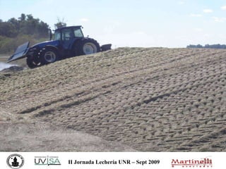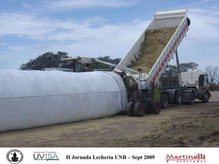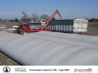 El documento discute la importancia creciente de la producción y almacenamiento de alimentos para satisfacer las necesidades de una población mundial en aumento. Examina las realidades de países como India, Argentina y China, y destaca el potencial del ensilaje para conservar forrajes y granos de manera eficiente. Presenta los servicios y cultivos que ensila la empresa Martinelli y Asociados, así como consideraciones técnicas clave para lograr silajes de alta calidad.