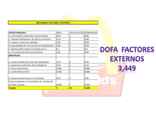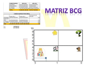 Este documento habla sobre una estrategia de reforma para la cajita feliz de McDonald's. Propone innovar el producto de vaca lechera para que sea más saludable y atractivo para los niños y sus padres, ya que la tendencia actual es pedir comidas más sanas. Esto permitiría que la cajita feliz no entre en declive y McDonald's mantenga su posicionamiento en el mercado.