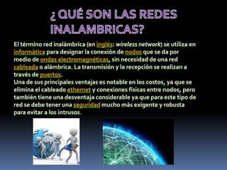Las redes inalámbricas se pueden clasificar en tres tipos principales: WPAN, redes de área personal inalámbrica; WMAN, redes metropolitanas inalámbricas; y WWAN, redes de área amplia inalámbricas, que difieren en su cobertura geográfica.