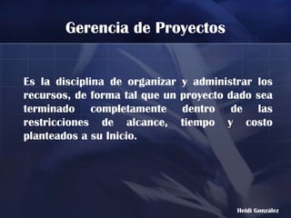 Este documento presenta información sobre la gerencia de proyectos. En 3 oraciones o menos: