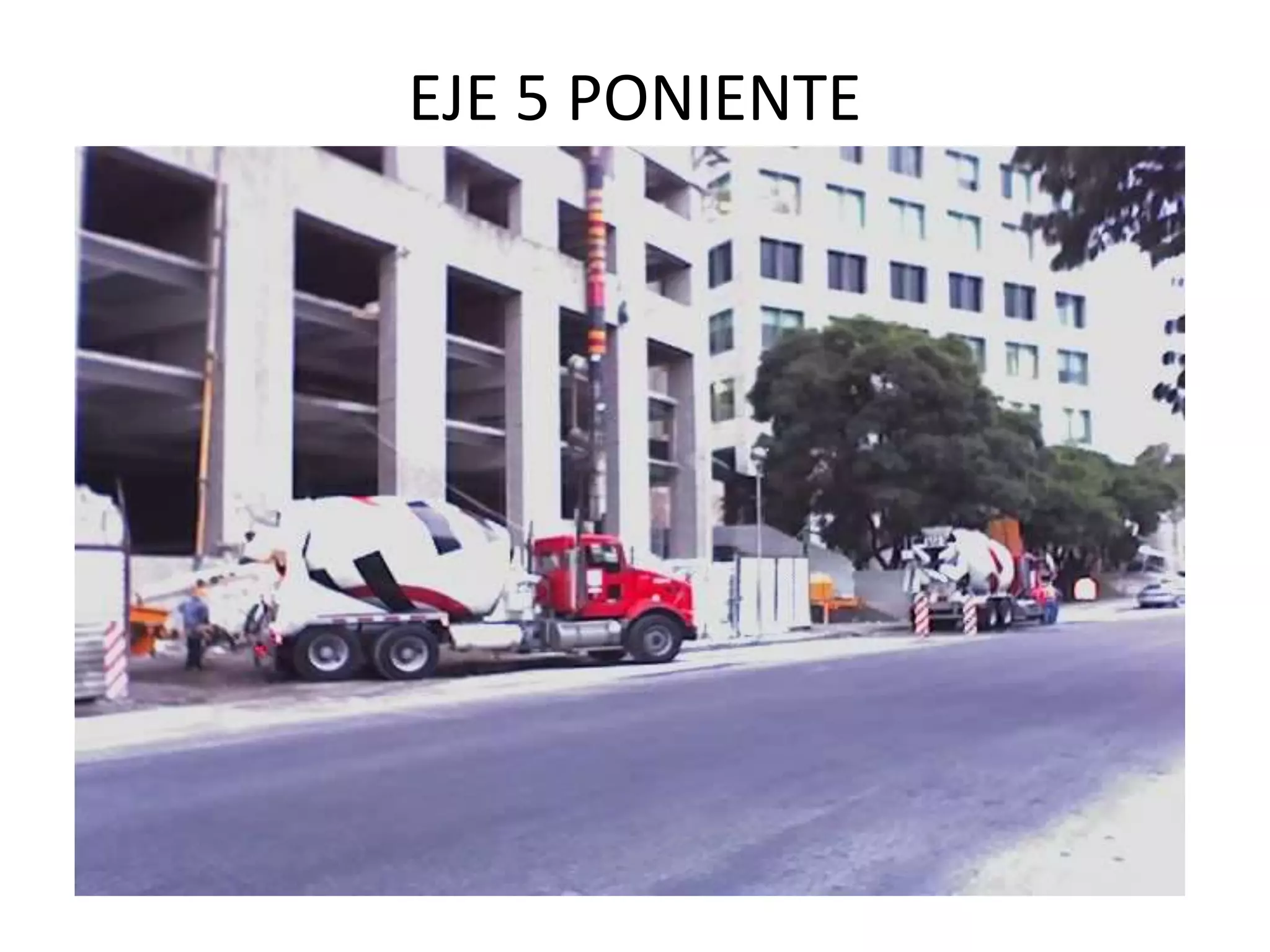 El documento habla sobre la avenida Eje 5 Poniente. En concreto, menciona que es una de las principales vías de circulación en la ciudad y que conecta varios puntos importantes como el centro histórico y la zona industrial. Finalmente, señala que debido al alto tráfico que soporta es necesario realizar obras de ampliación y mejora para facilitar el flujo vehicular.