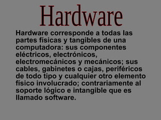 Este documento describe las principales partes de un ordenador, incluyendo el monitor, placa base, CPU, memoria RAM, tarjetas de expansión, fuente de alimentación, disco duro, teclado, mouse y diferentes formas de conectarse a Internet como modem, ADSL, cable, satélite, red eléctrica, Wi-Fi y Ethernet. También discute las ventajas e inconvenientes de las conexiones Wi-Fi.