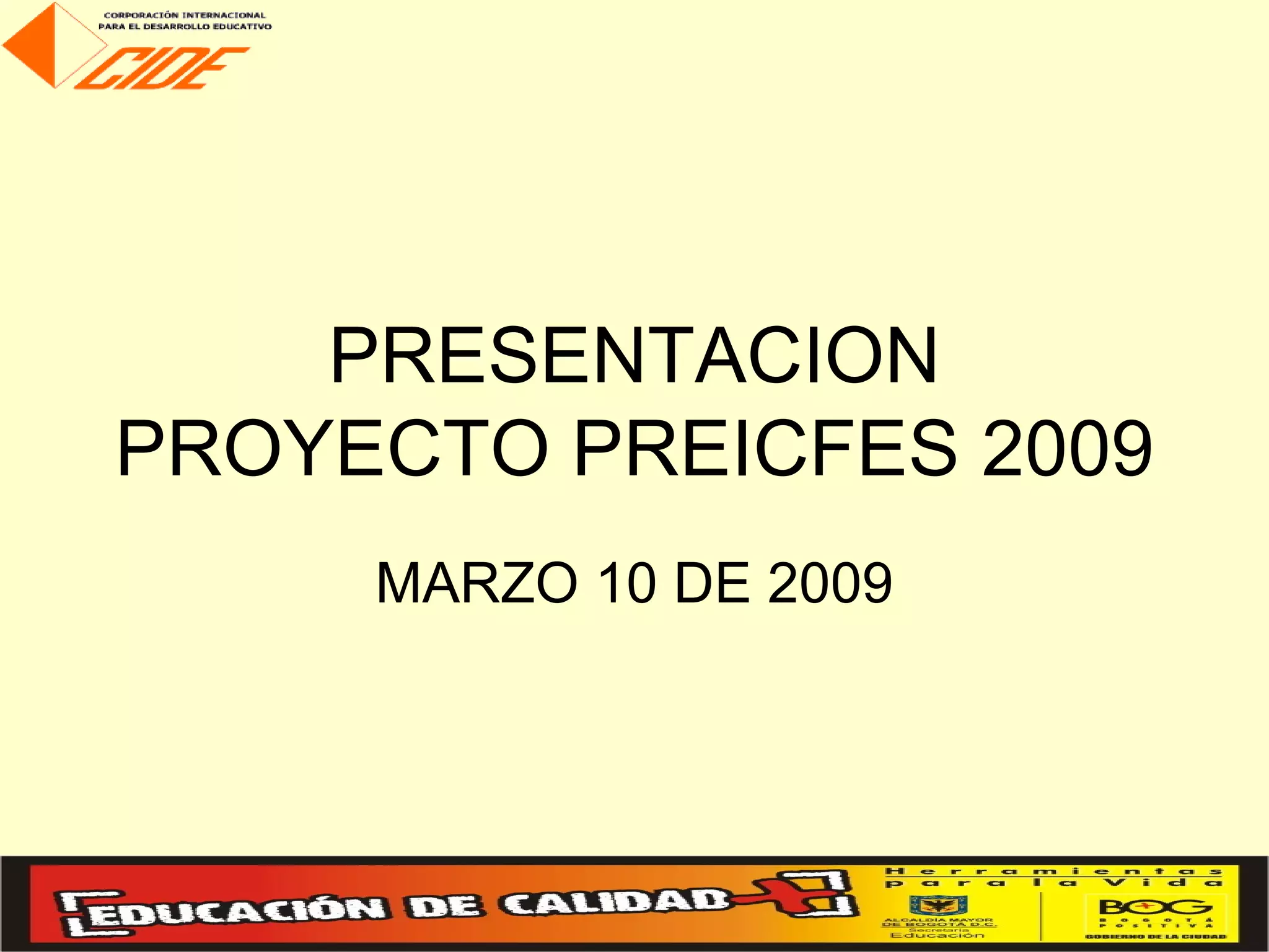 El documento presenta la información sobre un proyecto de preparación para el examen ICFES (Preicfes) para estudiantes de grado 11 de colegios distritales