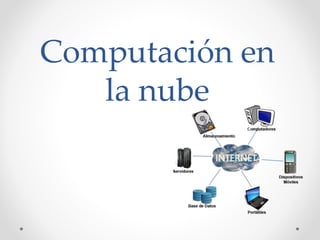El documento introduce los conceptos básicos de la computación en la nube. Explica que la computación en la nube permite ofrecer servicios de computación a través de una red, usualmente Internet. Luego describe los tres tipos principales de servicios en la nube: SaaS, PaaS e IaaS. Finalmente, discute aspectos como tipos de nubes, ventajas y desventajas del almacenamiento en la nube y herramientas populares de almacenamiento en la nube.