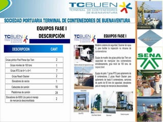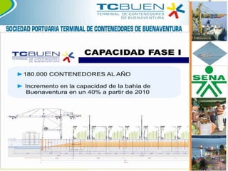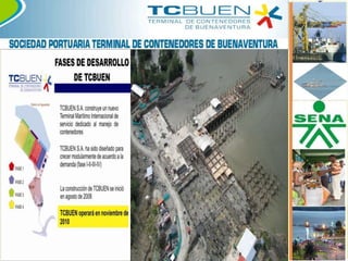 Este documento resume los planes de expansión portuaria y desarrollo logístico en Buenaventura. Menciona el acto legislativo que declaró a Buenaventura como distrito especial industrial, portuario, ecoturístico y biodiverso. También describe varios proyectos como el plan maestro de inversiones de la Sociedad Portuaria Regional de Buenaventura, la zona franca permanente TCBUEN, y los puertos industriales de Aguadulce. El objetivo es convertir a Buenaventura en el principal nodo portuario