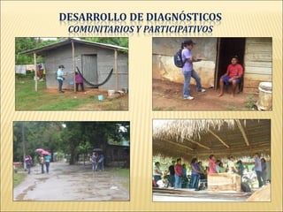 Este documento presenta información sobre la práctica de campo de estudiantes de tercer año de la Licenciatura en Desarrollo Comunitario con énfasis en Promoción y Organización Social. Se describen 7 proyectos comunitarios realizados en diferentes comunidades y centros de práctica en los distritos de Arraiján, Capira y La Chorrera. El documento también incluye información sobre los diagnósticos comunitarios realizados y las actividades académicas y culturales de la carrera.