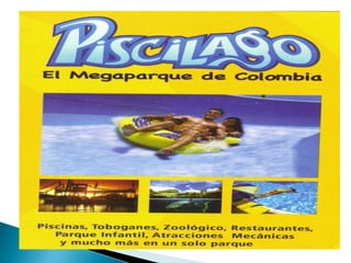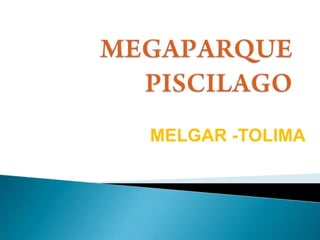 El Parque Recreativo y Zoológico Piscilago se encuentra en Melgar, Tolima a 70 km de Ibagué. Con 83 hectáreas y temperaturas entre 27-30°C, ofrece atracciones acuáticas como piscinas y deslizadores, atracciones mecánicas como trenes y un toro mecánico, y uno de los zoológicos más completos de Colombia.