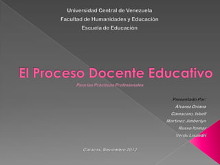 El documento describe el proceso de enseñanza-aprendizaje de los estudiantes universitarios y su desarrollo en prácticas profesionales. Se espera que los estudiantes desarrollen habilidades prácticas, teóricas y de resolución de problemas para servir a la sociedad y las organizaciones. El objetivo es formar profesionales capaces de intervenciones de calidad a través de aprendizaje constante, prácticas y asumiendo nuevos retos.