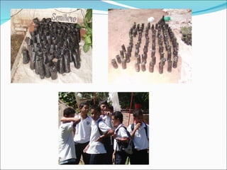 El documento describe los objetivos y procesos de crear e implementar un vivero forestal y zoológico de iguanas en una escuela técnica con el fin de enseñar sobre el medio ambiente y la conservación. Los estudiantes desarrollaron varias áreas como siembra de hortalizas, compostaje, lombricultura y cultivo de heliconias, además de crear un sitio para la reproducción y cría de iguanas con el objetivo de repoblar zonas verdes de la escuela y la ciudad.