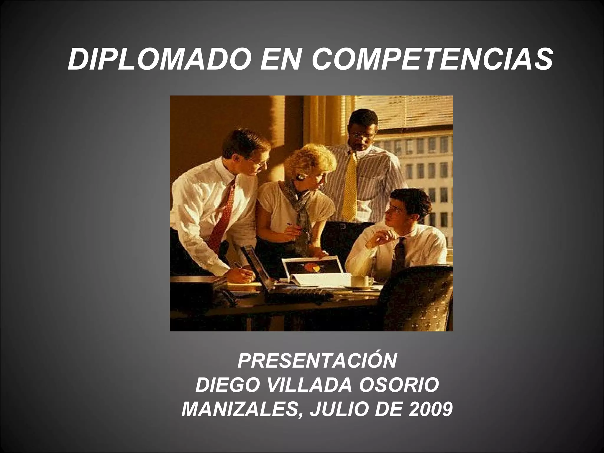Este documento presenta el diplomado en competencias que se llevará a cabo en Manizales, Colombia. El objetivo general es construir herramientas para la enseñanza y el aprendizaje basados en la teoría de las competencias. Se detallan los objetivos específicos, metas, forma de trabajo, fechas de los seminarios y aspectos de la evaluación. El diplomado se centrará en reflexionar y aplicar el enfoque de competencias a los procesos educativos.