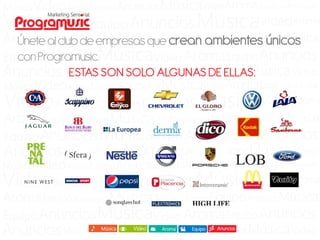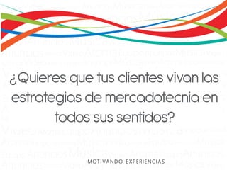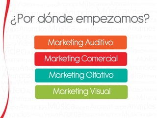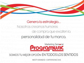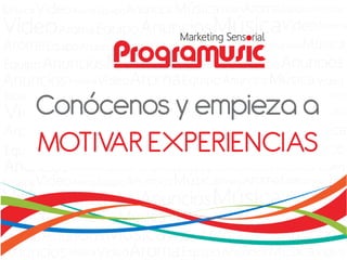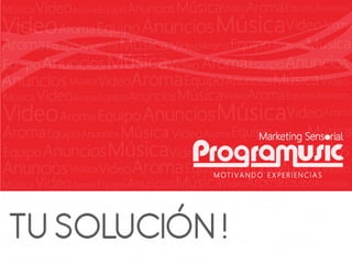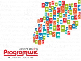 Este documento ofrece servicios de marketing sensorial para tiendas minoristas a través de la manipulación estratégica de aromas, música y anuncios visuales. Esto genera una experiencia de compra personalizada que mejora el estado de ánimo de los clientes y fortalece la identificación con la marca, lo que a su vez aumenta la productividad y las ventas.