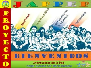 El documento resume un hogar escuela fundado en 1970 por hermanas misioneras para ofrecer albergue, educación y servicios psicosociales a jóvenes mujeres de 12 a 18 años. El hogar tiene la función de prevención primaria y secundaria para proteger a las jóvenes.