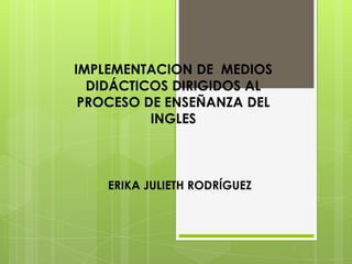 Este documento describe un proyecto para mejorar el aprendizaje del inglés en estudiantes de tercer grado a través del uso de medios didácticos. El proyecto diagnosticó las necesidades de los estudiantes, diseñó y creó medios didácticos, y evaluó los resultados del plan de estudios mejorado. Los resultados mostraron que los medios didácticos mejoraron el rendimiento académico al facilitar la comprensión de conceptos y motivar a los estudiantes.