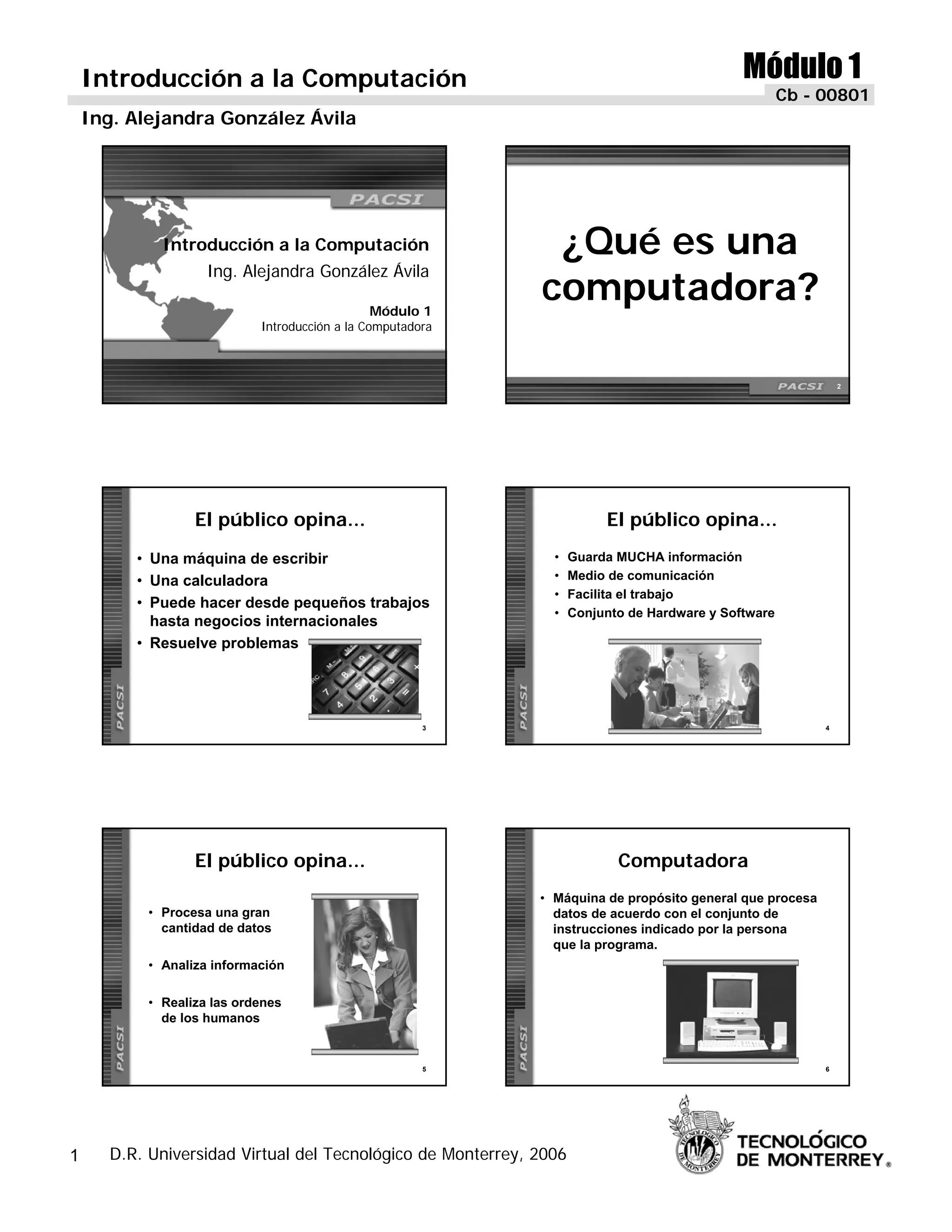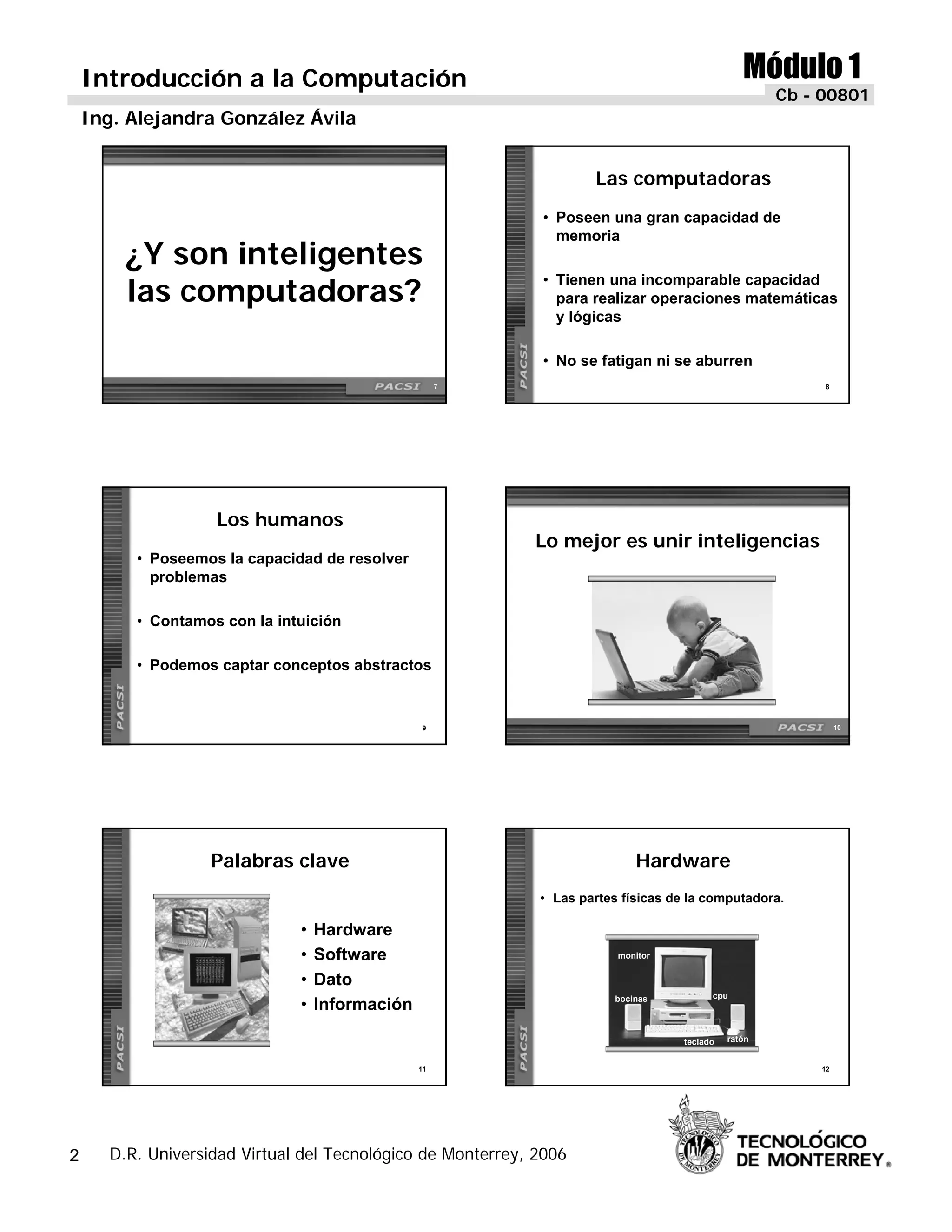 Este documento introduce el tema de las computadoras. Explica que una computadora es una máquina de propósito general que procesa datos de acuerdo a instrucciones. Describe que las computadoras tienen gran capacidad de memoria y son capaces de realizar operaciones matemáticas y lógicas rápidamente. Finalmente, distingue entre el hardware, que son las partes físicas de la computadora, y el software, que son las instrucciones que le indican qué hacer.