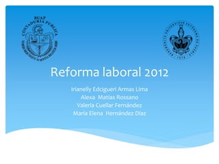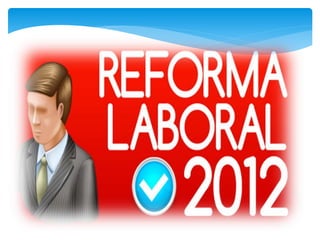 La reforma laboral de 2012 en México introdujo nuevas formas de contratación laboral como contratos por hora, de capacitación o temporada, y reguló el outsourcing. También limitó los salarios caídos a un año y garantizó derechos sindicales como transparencia y voto secreto. Si bien podría generar más empleos y mejores salarios, también había preocupaciones de que empeoraría las condiciones para los trabajadores de más antigüedad.