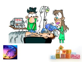 El documento proporciona información sobre la parada cardiorrespiratoria y el soporte vital básico. Explica que la parada cardiorrespiratoria implica la ausencia de actividad cardíaca y respiratoria normal. Recomienda iniciar la reanimación cardiopulmonar lo antes posible mediante masajes cardíacos y ventilación boca a boca para mantener con vida el cerebro hasta la llegada de ayuda médica avanzada. Además, detalla los pasos para realizar la reanimación cardiopulmonar de forma segura y efectiva