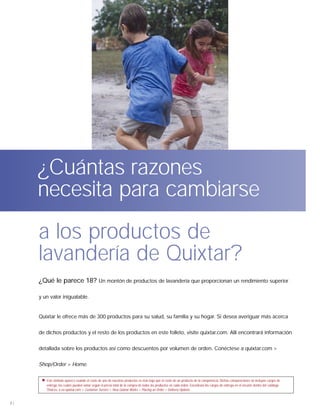 El documento proporciona información sobre el sistema de lavandería SA8, que incluye una variedad de productos de lavandería como detergentes, suavizantes, quitamanchas y aditivos diseñados para trabajar juntos para brindar ropa más limpia y brillante. Se comparan los productos SA8 con marcas líderes, mostrando que SA8 elimina mejor las manchas comunes y es más concentrado y económico.