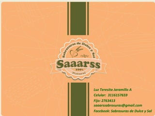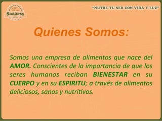 Saaarss es una empresa de alimentos que ofrece productos 100% naturales y saludables, elaborados artesanalmente con ingredientes de alta calidad. Sus ofertas incluyen tortas integrales, golosinas nutritivas y empanadas, todas libres de azúcares y químicos, destinadas a promover el bienestar. Además, brindan servicios de preparación de alimentos para eventos y talleres sobre comida sana.