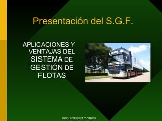 Este documento describe los sistemas de gestión de flotas que utilizan la tecnología GPS y GSM para proporcionar localización en tiempo real de vehículos, control de rutas y trazabilidad de mercancías. Estos sistemas ofrecen ventajas como ahorro de costes, mejora de la eficiencia y servicio al cliente. Se aplican a flotas de carga completa, carga fraccionada y maquinaria, y permiten la gestión remota a través de Internet sin necesidad de software adicional.