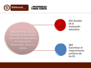 El SIGCE es un sistema de información que soporta el ciclo de calidad educativa mediante el registro y análisis de datos sobre estándares, evaluación y mejora. Permite la articulación entre establecimientos educativos, secretarías de educación y el Ministerio de Educación a través de módulos sobre planes institucionales, evaluaciones, uso de TIC y mejora continua.