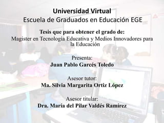 Este documento resume una tesis de maestría que evalúa si el uso del programa Cabri Géomètre permite lograr el aprendizaje de homotecias en estudiantes de educación secundaria. La investigación se llevó a cabo en una institución educativa oficial en Bogotá y utilizó guías auto dirigidas y una prueba final para medir el aprendizaje. Los resultados mostraron que el uso de Cabri mejoró la actitud de los estudiantes hacia la geometría y contribuyó a la comprensión del concepto de homotecias
