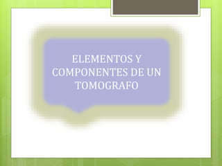 Un tomógrafo está compuesto por varios elementos clave: (1) un gantry que contiene el tubo de rayos X y detectores, (2) una mesa donde se coloca al paciente, y (3) una sala de consolas desde donde el operador controla el escáner. El gantry y la mesa trabajan juntos para adquirir datos de secciones transversales del cuerpo del paciente, mientras que la sala de consolas permite al operador supervisar el examen y comunicarse con el paciente.
