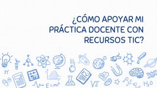 Este documento describe diferentes recursos TIC que pueden apoyar la práctica docente, incluyendo tres tipos de educación con TIC (e-learning, b-learning y m-learning), dos opciones de hosting y almacenamiento (aulas virtuales y blogs educativos), recursos digitales como videos y simulaciones, y aplicaciones para actividades, evaluación y trabajo colaborativo.
