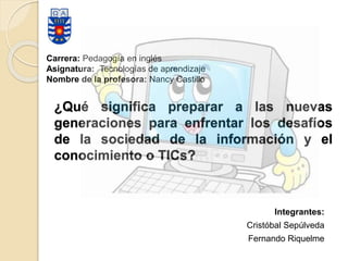 Preparar a las nuevas generaciones para enfrentar los desafíos de la sociedad de la información y el conocimiento significa enseñarles a aprovechar los beneficios de las tecnologías de la información y la comunicación (TIC), como el fácil acceso a información, la comunicación inmediata y el almacenamiento de datos. Las TIC también automatizan trabajos y permiten la interactividad y digitalización de la información. Es necesario educar a los estudiantes para que puedan funcionar en una sociedad basada en el conocimiento.
