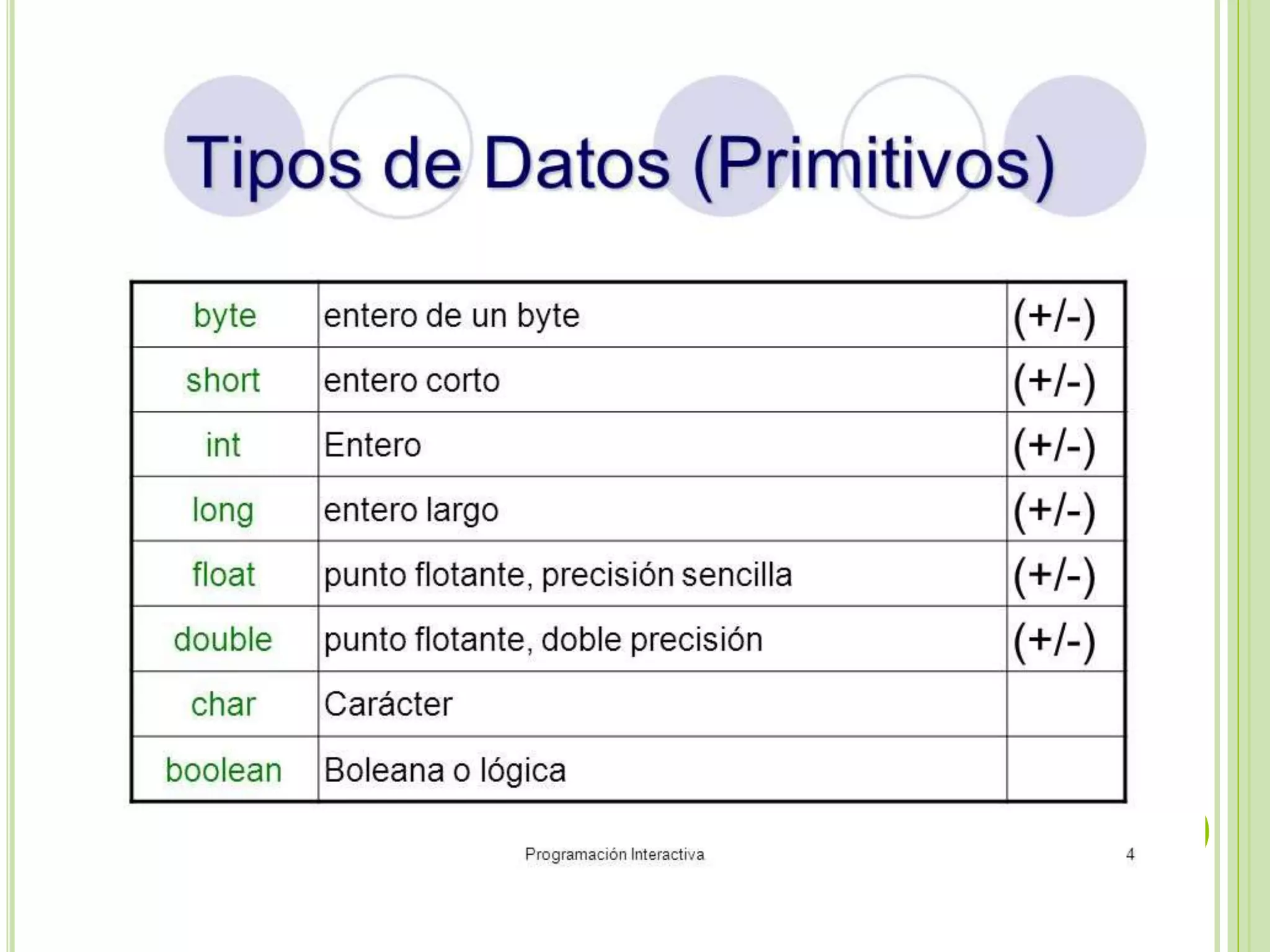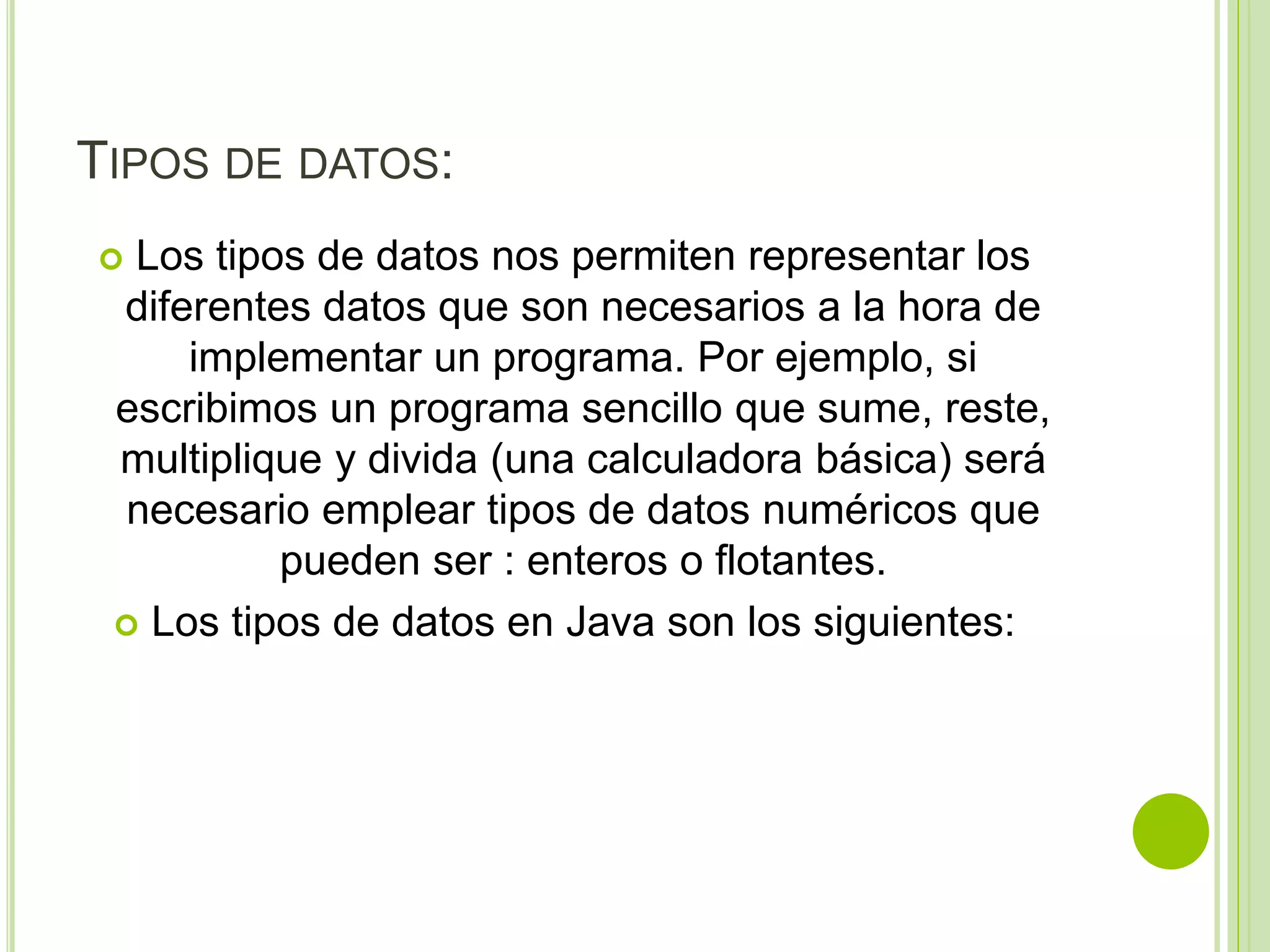 Este documento describe los diferentes tipos de datos en Java, incluyendo enteros (byte, short, int, long), flotantes (float, double), booleanos y caracteres. Explica que los tipos de datos representan la información que se usa en un programa y el rango de valores que pueden almacenar las variables. También compara brevemente los tipos de datos en Java y Pascal.