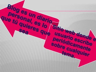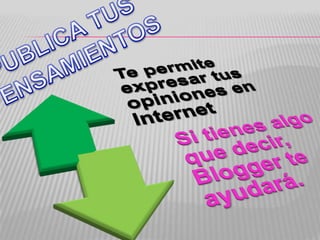 Este documento resume las políticas de contenido de Blogger, un servicio gratuito de blogs. Se permite todo contenido apropiado excepto pornografía infantil, información personal sin consentimiento, y contenido que promueva la violencia, actividades ilegales o derechos de autor. Los usuarios deben respetar estas políticas o su cuenta podría ser cancelada.
