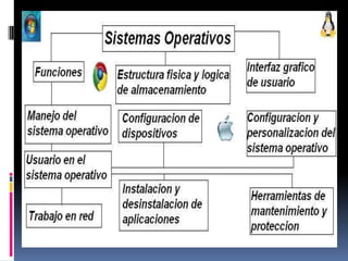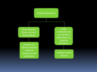 El documento proporciona una introducción a los sistemas operativos. Define un sistema operativo como el software básico de una computadora que provee una interfaz entre los programas y el hardware, realizando tareas básicas como reconocer la conexión del teclado y controlar dispositivos periféricos. Explica que los sistemas operativos más utilizados son Windows, Linux y Mac y clasifica los programas en programas de sistema y de aplicación.