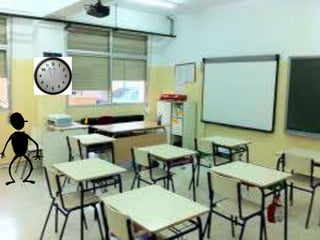 Dos personas conversan sobre sus trabajos en la escuela del centro de la ciudad. Una persona le pregunta a la otra cómo le fue en el trabajo y la otra responde que le fue bien y pregunta cómo le fue a la otra persona también.