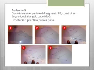 Este documento presenta las resoluciones paso a paso de 9 problemas de geometría realizados por el alumno Gabriel J. Salvador Portillo para su clase de Geometría 1 en la Facultad de Estudios Superiores Cuautitlán de la UNAM. Cada problema contiene entre 1 y 18 pasos detallados para su resolución.