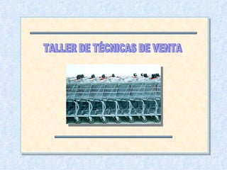 El documento presenta un taller sobre técnicas de venta dirigido a consumidores. Explica cómo los hábitos de consumo han cambiado con la aparición de grandes superficies y cómo las estrategias de marketing y merchandising influyen en las compras. Describe distintos tipos de compra y estrategias utilizadas en grandes supermercados para inducir compras no planificadas, como la distribución del espacio, la ubicación de productos y las ventas de ocasión.