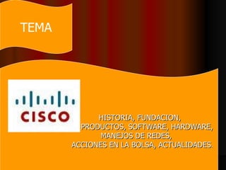 Cisco Systems es una empresa estadounidense fundada en 1984 que fabrica equipos de telecomunicaciones como routers, switches y firewalls. Cisco se dedica a proporcionar soluciones de red a empresas y organizaciones de todo el mundo y ha adquirido varias otras compañías para ampliar su oferta de productos. Actualmente Cisco emplea a más de 75,000 personas y opera a nivel global con sedes en varios continentes.