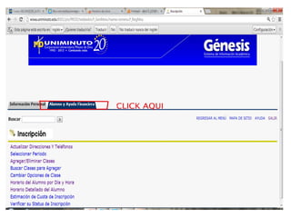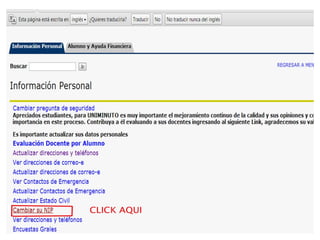 Este documento contiene información sobre diferentes temas relacionados con la educación como agregar clases, cambiar contraseñas, horarios de clase y el reglamento estudiantil de una institución llamada Uniminuto, así como su misión y visión.