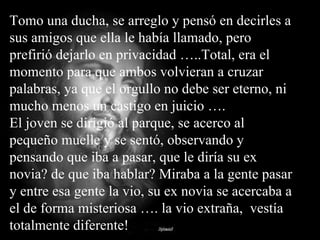 Un joven recibe una llamada de su ex novia para reunirse en el parque. Al llegar, ella luce pálida y le entrega una cruz, diciendo que lo ama. La acompaña a su casa y sus amigos le dicen que falleció. La madre le explica que murió de tristeza. En una carta, ella dice que también sentía lo mismo y se despide de él. El joven se da cuenta que dejaron que el rencor los separara y pide perdón.