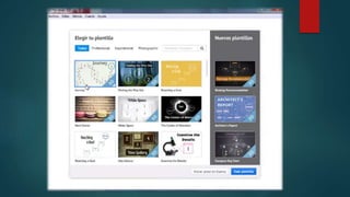 Este documento describe diferentes tipos de presentaciones digitales, incluyendo PowerPoint, Prezi e Impress. PowerPoint permite crear presentaciones con diapositivas que incluyen texto, imágenes, videos y animaciones para facilitar presentaciones en negocios y educación. Prezi es una aplicación similar pero que permite crear presentaciones interactivas en línea con mapas conceptuales. Impress es una aplicación de presentaciones incluida en la suite ofimática de LibreOffice.