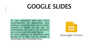 Este documento presenta una comparación de tres programas para crear presentaciones: Google Slides, Canva y Powtoon. Describe las características principales de cada uno y sus ventajas. Google Slides es una herramienta en línea gratuita para crear presentaciones de diapositivas de manera colaborativa. Canva ofrece plantillas pre-diseñadas y acceso a imágenes gratuitas. Powtoon es un programa de animación que permite crear presentaciones interesantes y atrapantes mediante el uso de efectos, transiciones y recursos dinámicos.