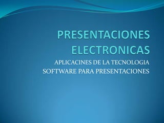 Este documento describe las ventajas y expectativas de usar software para crear presentaciones electrónicas. El software permite crear presentaciones atractivas de manera rápida incluyendo elementos multimedia como texto, imágenes, sonido y video. También facilita agregar efectos de transición y animaciones. Las presentaciones electrónicas pueden despertar interés, estimular pensamiento e inyectar humor, pero la tecnología no reemplaza la preparación ni al presentador.