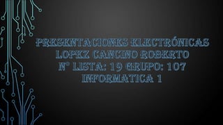 La presentación electrónica permite que la información del contribuyente se transmita a las agencias de ingresos de forma electrónica a través de Internet, un módem o una línea telefónica. Prezi es un programa para hacer presentaciones en flash que permite hacer zoom de manera visual y efectista, aunque se debe tener cuidado de no abusar de los efectos. SlideShare y AuthorStream son herramientas en línea para compartir presentaciones de diapositivas de PowerPoint que también se pueden exportar a YouTube. Scribd permite publicar, compartir y encontrar documentos en