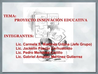 Este documento presenta un proyecto de innovación educativa para la Institución Educativa N° 2038 "Inca Garcilaso de la Vega" ubicada en Collique, Comas. El proyecto busca actualizar la didáctica mediante el uso de las TIC para superar factores que limitan su uso como el desconocimiento docente. Se justifica teórica y legalmente, presenta un marco constructivista y aborda el aprendizaje colaborativo.