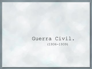 La Guerra Civil Española estalló en 1936 cuando un grupo de militares se sublevó contra el gobierno republicano recién elegido. El conflicto enfrentó a los sublevados nacionalistas, apoyados por Alemania e Italia, contra las fuerzas leales a la República, respaldadas por la Unión Soviética. Tras tres años de lucha, las tropas franquistas tomaron el control de gran parte del país, obligando al exilio del gobierno republicano en 1939 y estableciendo una dictadura militar que duró hasta 1975.