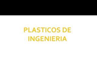 El documento describe las propiedades y usos de varios tipos de plásticos. Explica que los plásticos tienen ventajas como menor peso, no se oxidan, absorben vibraciones y son más económicos que otros materiales. Luego detalla procesos como compresión, inyección y extrusión para moldear plásticos y cómo se usan diferentes aditivos para darles propiedades específicas.