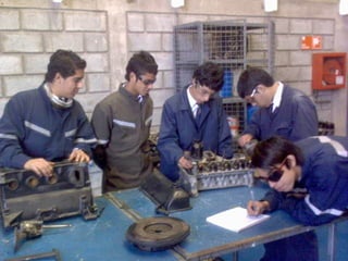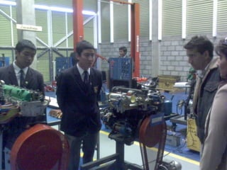 El documento describe un programa de educación técnica dual en mecánica automotriz. El programa capacita a estudiantes para trabajos de mantenimiento y reparación de vehículos. Los estudiantes pasan tiempo en el aula y en empresas para adquirir experiencia laboral. El programa beneficia a estudiantes, escuelas y empresas al brindar capacitación práctica y promover la inserción laboral.