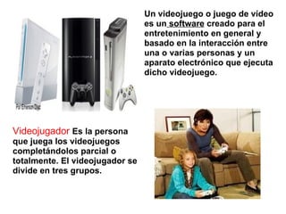 Los videojuegos se originaron en la década de 1940 y han evolucionado desde programas de ajedrez hasta complejos juegos interactivos. Los primeros videojuegos modernos aparecieron en la década de 1960 y desde entonces la creatividad de los desarrolladores y la tecnología han impulsado su crecimiento. Existen varios modos de juego multijugador, como jugar en línea o mediante una red local con varios dispositivos.