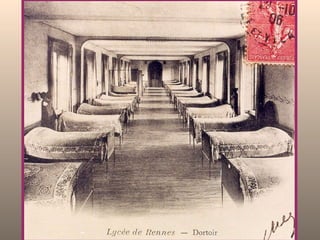 Este documento resume la historia de 500 años de educación en el mismo sitio del Instituto y Colegio Emile-Zola en Rennes, Francia. Se construyó originalmente como el Colegio municipal y real en 1536 y ha tenido varios nombres a lo largo de los siglos, incluido el Colegio de los Jesuitas. Ha albergado a varios alumnos notables como Chateaubriand, Ginguené y Paul Ricoeur. El documento también describe eventos históricos como el segundo juicio de Dreyfus que ocurrió allí y