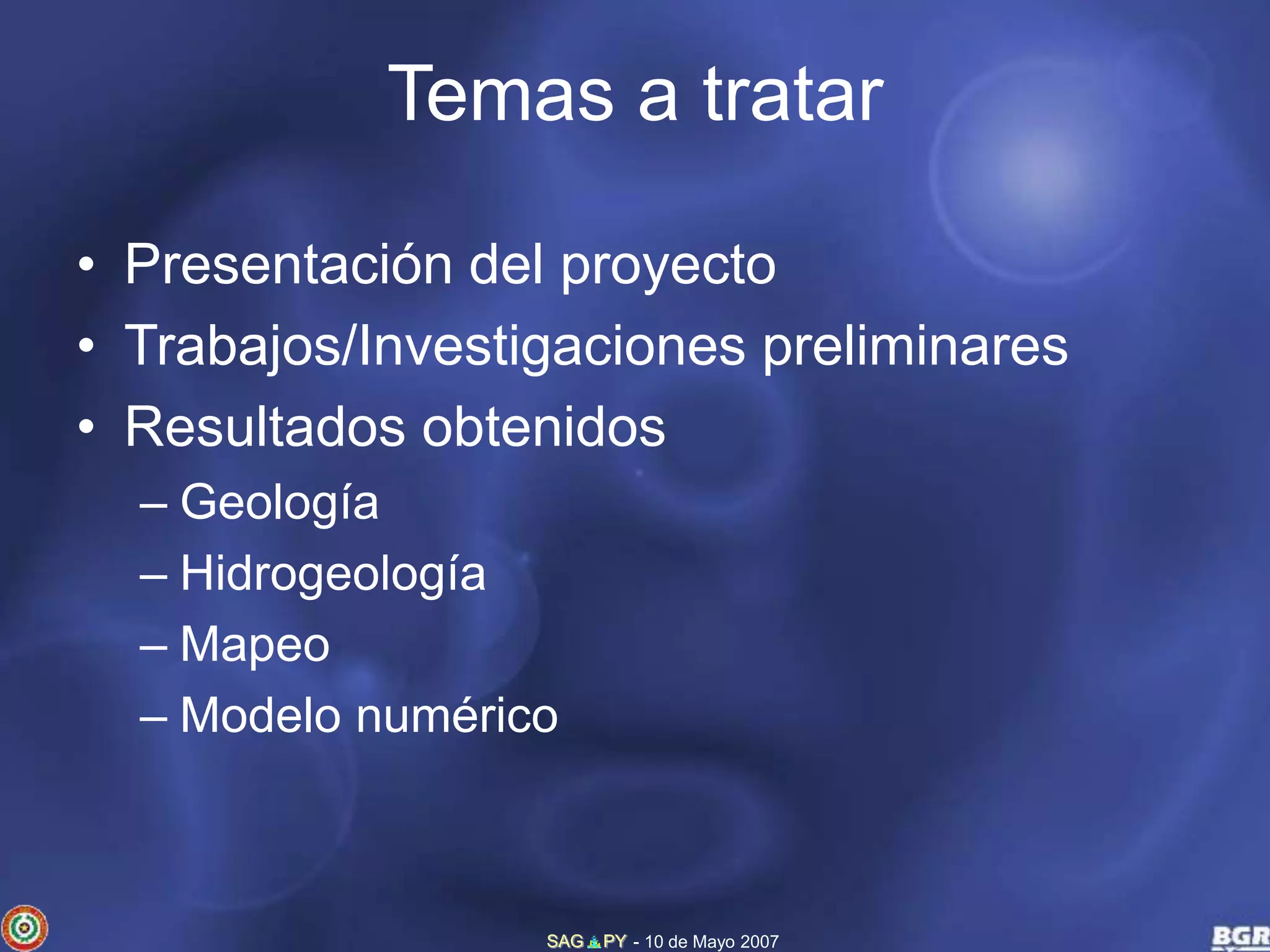 Este documento presenta los resultados de un proyecto de investigación hidrogeológica realizado entre 2005-2007. Se recopilaron datos existentes, se realizó un censo de pozos y muestreo de aguas. Los resultados incluyen la geología de la zona, la dirección del flujo de aguas subterráneas, las propiedades químicas del agua, un mapeo hidrogeológico y la creación de un modelo numérico conceptual y de flujo del acuífero.